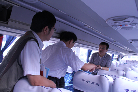 媒體記者逐一參觀了濟(jì)南長途汽車總站,零距離體驗了駕駛員人臉識別、酒精檢測、車載GPS、3G視頻等車站源頭安全管理和班車實時動態(tài)監(jiān)控情況;深入檢票一線和班車發(fā)車區(qū),與黨的十八大代表、山東省勞模李文親切交流;登上LNG清潔能源高級商務(wù)車,向安全行車370萬公里“零事故”駕駛員、省勞模賈湘鳴,詳細(xì)了解安全運(yùn)營節(jié)能情況;在96369服務(wù)熱線、總服務(wù)臺、“英語崗”、“女士購票窗口”等特色服務(wù)崗位,體驗了電話預(yù)約售票及特色服務(wù)流程。在接下來的座談中,王謙總經(jīng)理詳細(xì)介紹了集團(tuán)各產(chǎn)業(yè)板塊近年來不斷發(fā)展的基本概況、商業(yè)模式創(chuàng)新探索的效果以及今后工作的發(fā)展方向等,并對各新聞媒體關(guān)于集團(tuán)戰(zhàn)略發(fā)展規(guī)劃、重點項目工程建設(shè)、不同產(chǎn)業(yè)創(chuàng)新舉措等提問進(jìn)行了解答。各新聞媒體對集團(tuán)公司堅持“安全十六字方針”和“人文關(guān)懷”理念,建設(shè)本質(zhì)性安全企業(yè)、在創(chuàng)新創(chuàng)效、節(jié)能減排等方面采取的有效措施以及“親情化管理,友情化服務(wù)”等方面傾注了較多關(guān)注,并提出了一些建設(shè)性的意見和建議。