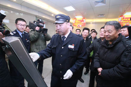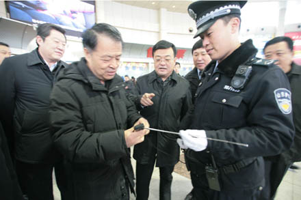 楊傳堂部長特別叮囑車站工作人員說:“安全檢查是車站服務(wù)的第一道關(guān)口,要充分利用人防、物防、技防等綜合手段加強(qiáng)關(guān)口職能到位,要牢固樹立安全第一的觀念,確保旅客乘車安全。”