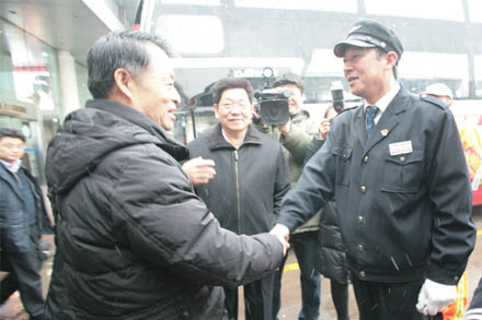 1月21日,交通運(yùn)輸部楊傳堂部長及部有關(guān)領(lǐng)導(dǎo)在張建國副省長、賈學(xué)英廳長、高洪濤副廳長、江成局長的陪同下,蒞臨集團(tuán)長途汽車總站視察指導(dǎo)春運(yùn)工作,并親切看望和慰問了一線干部職工。集團(tuán)吳宗昌董事長、王謙總經(jīng)理等相關(guān)領(lǐng)導(dǎo)陪同視察。