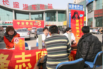 由集團(tuán)公司組宣部、團(tuán)委牽頭,總部團(tuán)員青年和聯(lián)運(yùn)出租、黃河航運(yùn)局船員服務(wù)公司共同參與了由多家媒體與省殘聯(lián)共同組織的全省特困腦癱兒童和濟(jì)南市特困殘疾朋友免費(fèi)游泉城活動(dòng)。義務(wù)提供車輛和游船服務(wù),讓殘疾人朋友體會(huì)到了春天的溫暖??傉灸蠀^(qū)繼續(xù)以“關(guān)愛號(hào)”為主題,和泉城義工共同發(fā)出了“人人都是志愿者,我做義工一小時(shí)”的倡議,為社會(huì)文明建設(shè)貢獻(xiàn)力量。開展了圓空巢老人游園夢(mèng)活動(dòng),帶領(lǐng)敬老院孤寡老人游覽了濟(jì)南動(dòng)物園,讓老人平生第一次見到了大熊貓;汽車東站開展了返程農(nóng)民工免費(fèi)電話報(bào)平安活動(dòng),團(tuán)支部還組織團(tuán)員青年到周邊小區(qū)義務(wù)清潔,得到了附近居民的一致好評(píng),免費(fèi)發(fā)放的班車時(shí)刻表,以方便居民乘車為目的,較好地宣傳了汽車東站新形象、新風(fēng)貌;長(zhǎng)清分公司團(tuán)支部開展了服務(wù)一線送溫暖活動(dòng)。他們來到位于長(zhǎng)清老城區(qū)的發(fā)車站點(diǎn),準(zhǔn)備了茶葉、一次性紙杯以及打掃工具,為收車歸隊(duì)的駕駛員送上一杯熱茶并為其清掃車內(nèi)衛(wèi)生,讓他們?yōu)橄乱话嘬嚨臓I(yíng)運(yùn)備足精力;同時(shí),為堅(jiān)守在交通指揮崗位上的交警同志送上一杯熱茶表達(dá)感謝與慰問。
