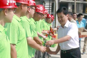 七月盛夏,連日來的高溫和暴雨天氣,給重點基建項目工程施工以及一線職工安全生產(chǎn)工作帶來了嚴(yán)峻考驗,集團(tuán)公司領(lǐng)導(dǎo)高度重視,7月24日,集團(tuán)公司董事長、黨委書記吳宗昌、集團(tuán)公司董事、工會主席張志堅、紀(jì)委書記劉鳳義、總經(jīng)濟(jì)師馮唯一等領(lǐng)導(dǎo)組成“送清涼”慰問組,專程來到濟(jì)南市重點工程——“濟(jì)南西客站綜合客運樞紐工程”項目部,向冒著酷暑戰(zhàn)斗在生產(chǎn)一線的廣大職工表示親切慰問,并為他們送去防暑降溫物品和一份關(guān)愛。