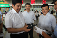 李建波組長一行首先來到安全監(jiān)控中心詳細(xì)了解集團(tuán)安全運營管理情況,聽取了相關(guān)匯報?,F(xiàn)場檢查中,李建波組長先后來到總站96369熱線、進(jìn)站安檢崗、總站服務(wù)臺、交通與郵政合作服務(wù)點、濟(jì)宇商務(wù)巴士、安全報班處,了解總站安全生產(chǎn)的科技化管理與創(chuàng)新特色服務(wù)情況,親切慰問了十八大代表李文、安全標(biāo)兵賈湘鳴等廣大一線職工。