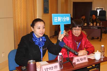 演講答辯按照競聘職位分組進(jìn)行,共設(shè)1個(gè)主會(huì)場、4個(gè)工作室,會(huì)前通訊工具統(tǒng)一保管,考前、考后人員不得隨意外出,相互不見面、不交流,確保了考場紀(jì)律和公平性。每位競聘人員通過10分鐘的演講介紹自己的基本情況、工作簡歷、競爭優(yōu)勢(shì)、工作實(shí)績和對(duì)競聘崗位工作的設(shè)想,并在5分鐘內(nèi)完成審題、思考和答辯。評(píng)委按照《演講答辯評(píng)分表》的標(biāo)準(zhǔn)進(jìn)行現(xiàn)場打分,每組職位演講答辯結(jié)束后統(tǒng)一匯總計(jì)分。