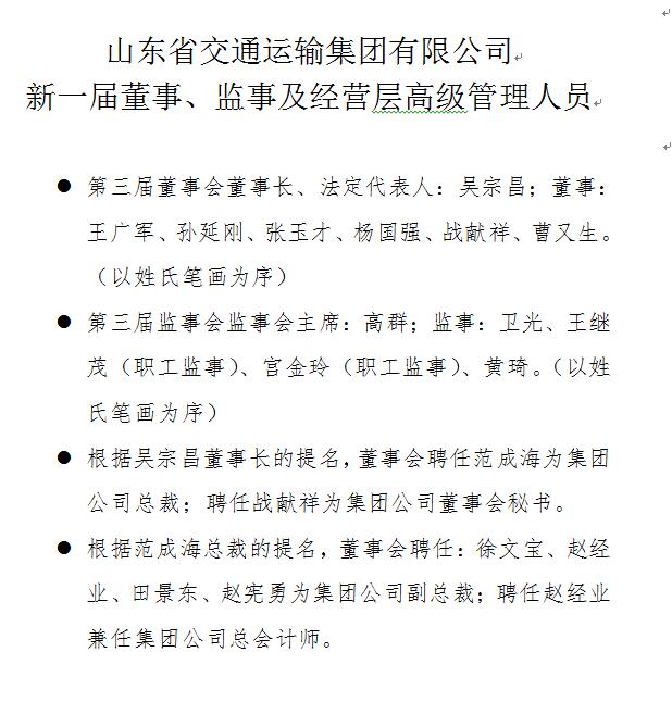 9月22日,集團(tuán)公司在國惠投資有限公司會議室相繼召開了2017年第三次股東會、三屆一次董事會和三屆一次監(jiān)事會,審議通過了集團(tuán)公司混合所有制改革產(chǎn)權(quán)交易結(jié)果和新公司《章程》,選舉產(chǎn)生了集團(tuán)公司混改后新一屆董事、董事長和監(jiān)事、監(jiān)事會主席,聘任了集團(tuán)公司經(jīng)營層高級管理人員。會上,集團(tuán)公司新任總裁范成海、新任監(jiān)事會主席高群做了表態(tài)發(fā)言;新任董事長吳宗昌、山東國惠投資有限公司董事長于少明做了重要講話。這標(biāo)志著集團(tuán)公司本輪混改圓滿完成,集團(tuán)混合所有制改革結(jié)出實(shí)質(zhì)性碩果。