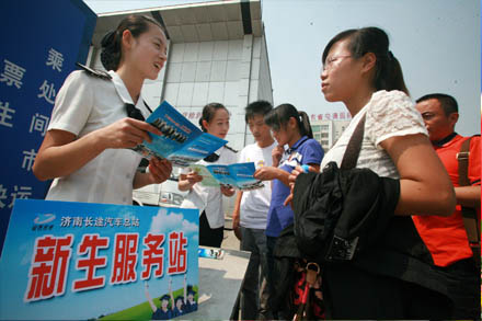 臨近中秋假期,總站推出“仲秋送紅包”的活動,為在總站網(wǎng)站預(yù)訂三張以上仲秋當日客票的旅客送出 “仲秋紅包”——會員優(yōu)惠卡,為旅客的“團圓”之旅增添一份愉悅的感受;此外,各大高校開學在即,總站特別在旅客到達區(qū)設(shè)立了新生服務(wù)站,開通便利接站的綠色服務(wù)通道,為廣大新生及家長提供各種班次信息和引導(dǎo),幫助新生順利到校;為保證節(jié)日期間旅客運輸安全,總站進一步強化了對班車和站區(qū)的安保力度,在候車大廳設(shè)立了消防器材使用、緊急逃生技巧等內(nèi)容的安全常識展板,為過往旅客普及安全知識,提高安全意識。