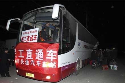 汽車東站發(fā)出首班春運(yùn)“民工直通車”