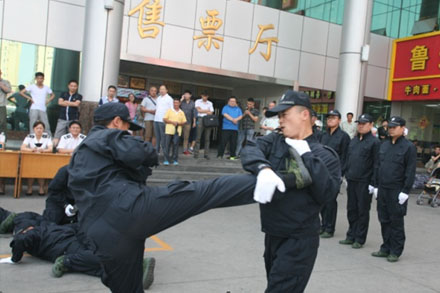 來自總站治安科的14名治安員通過“單科演練”、“對打演練”、“集體演練”三個科目,分別進(jìn)行了“擒敵拳”防爆演練。期間,靈活有力的“盤腿飛踢”、“抱頭重摔”和能有效沖擊、控制恐怖分子的“貫耳沖擊”、“纏腕沖騰”等演練,博得了在場旅客的陣陣掌聲與喝彩。最終通過領(lǐng)導(dǎo)打分,共評選出一等獎1名,二等獎2名,三等獎3名,并現(xiàn)場進(jìn)行了表彰。
