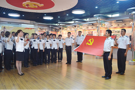 通過觀看黨史館的文獻資料及歷史圖片,大家共同追尋紅色記憶,重溫歷史,不但了解和學習了中國共產(chǎn)黨從大革命時期到改革開放以來不斷發(fā)展的歷史過程,也充分了領(lǐng)略了在黨的正確領(lǐng)導下,中國人民勤勞勇敢、奮斗創(chuàng)業(yè)的華彩篇章。在鮮紅的黨旗下,全體黨員莊嚴宣誓,重溫入黨誓詞,增強了作為黨員干部的責任意識。