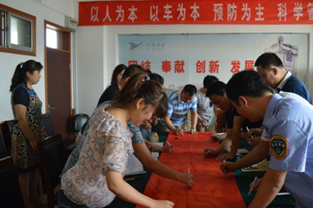近日,第三客運(yùn)公司舉行了《控事故·治違章·安全管理提升月》活動啟動儀式?;顒佑砂踩a(chǎn)事故警示教育培訓(xùn)周、隱患排查治理周、應(yīng)急預(yù)案演練周和安全生產(chǎn)知識競賽四項活動組成。計劃在8月份,第三客運(yùn)公司將集中開展應(yīng)急預(yù)案演練、強(qiáng)化隱患排查治理、宣傳法律法規(guī)等活動,通過隨車行、GPS監(jiān)控、教育培訓(xùn)等手段,加強(qiáng)宣傳“強(qiáng)化紅線意識、促進(jìn)安全發(fā)展”和“一崗雙責(zé)、綜合治理”的理念,達(dá)到嚴(yán)控違章駕駛等違規(guī)行為,杜絕較大以上行車責(zé)任事故的目標(biāo)。其中,在8月13日開展安全生產(chǎn)宣傳咨詢?nèi)掌陂g,公司全體職工參加了安全知識小競賽、安全謎語猜猜看、安全小知識普及、安全演講等一系列宣傳咨詢活動,聆聽了《生命是花,安全是根》演講,職工們積極參與活動的各個環(huán)節(jié),氣氛熱烈,最后大家在橫幅共同簽字,表示將居安思危,防微杜漸,推動公司安全生產(chǎn)工作穩(wěn)定發(fā)展。