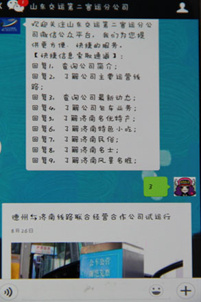 近日,第二客運分公司設計開通的“山東交運第二客運分公司”微信公眾號正式上線并進入試運行。乘客可以通過手機掃描公司二維碼或通過搜索公眾號“山東交運第二客運分公司”點擊“關注”,即可登陸公司微信服務平臺,及時收取公司相關活動資訊,查詢、了解公司客車班次變更、新班次開通、包車業(yè)務等相關信息,搶先知曉公司新服務、新營銷舉措,讓乘客足不出戶就可以享受方便、快捷、優(yōu)質的服務。