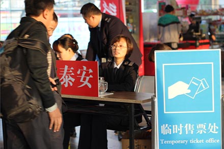 增點(diǎn)售票 確保暢通 為方便旅客購(gòu)票,東站在候車大廳7個(gè)售票窗口全部打開(kāi)的基礎(chǔ)上,另增設(shè)多個(gè)臨時(shí)售票點(diǎn);成立財(cái)務(wù)售票保障組,助力一線售票;制作了十余個(gè)醒目熱點(diǎn)線路標(biāo)識(shí)牌,在客流高峰期,由財(cái)務(wù)人員在大廳內(nèi)發(fā)售專線客票;開(kāi)通了網(wǎng)上購(gòu)票、熱線訂票、自助售票、機(jī)售票等多種購(gòu)票方式,方便旅客便捷購(gòu)票。