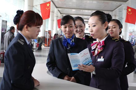同時(shí),根據(jù)集團(tuán)管理提升工程的要求,對(duì)標(biāo)高鐵,邀請(qǐng)濟(jì)南鐵路局客運(yùn)段的“高姐”——高鐵乘務(wù)員,和站務(wù)員們進(jìn)行了一場(chǎng)服務(wù)技能交流,通過(guò)服務(wù)禮儀、服務(wù)技能、服務(wù)思路的“公鐵交流”,讓更好的服務(wù)理念,更貼合旅客需求的服務(wù)技能得到推廣,更好地服務(wù)廣大旅客。