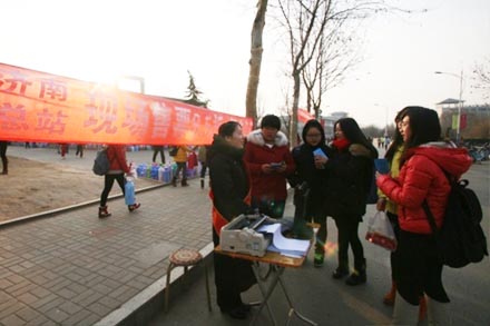 站內(nèi)站外創(chuàng)收益 近日,開展了“送餐到身邊”活動,將3000張“家好快餐訂餐卡”發(fā)放給駕乘人員,宣傳介紹葷素搭配營養(yǎng)特色餐品,駕乘人員可根據(jù)自己的喜好挑選不同價位、不同口味的餐品,電話預(yù)約好時間、餐品后,家好快餐的工作人員就會準(zhǔn)時送達(dá)??傉尽皩W(xué)子服務(wù)隊”也陸續(xù)進(jìn)駐山東中醫(yī)藥大學(xué)、濟(jì)南大學(xué)、山東財經(jīng)大學(xué)等20余所大中專院校,為廣大學(xué)子現(xiàn)場預(yù)售元旦及春運期間客票,提供現(xiàn)場購票享八五折、隨身行李一律免費的優(yōu)惠措施??傉具€對濟(jì)南市的150余個工地進(jìn)行了為期四天的冬季營銷宣傳活動,有針對性地向外來務(wù)工人員發(fā)放總站最新班次時刻表,了解工地具體放假時間,積極推介總站“農(nóng)民工直通車”服務(wù),為他們提供返鄉(xiāng)包車優(yōu)惠措施。