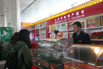 “家樂超市”喜添新成員。為最大限度發(fā)揮站務(wù)板塊的產(chǎn)業(yè)支撐作用,充分利用場站空間資源,不斷拓展總站營銷范圍,近日,總站在旅客稠密的候車長廊全新建立了“山東印象特產(chǎn)超市”,以銷售德州扒雞、高唐驢肉等獨具特色的山東特產(chǎn)為主,全新打造“家樂超市”品牌化經(jīng)營模式。同時,多經(jīng)辦積極與銷售商洽談合作,最終確定由娃哈哈等多家銷售商承擔(dān)該店的建設(shè)施工,這成為總站合作經(jīng)營又一次成功的資源互置與互利共贏范例?!吧綎|印象特產(chǎn)超市”的開業(yè),不僅滿足了廣大旅客的購物需求,更開辟了多經(jīng)辦多元化經(jīng)營新途徑,僅開業(yè)前三天的營業(yè)額就達到近萬元。