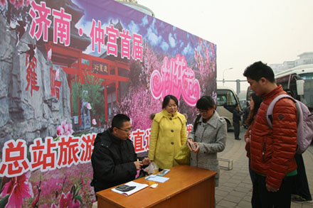 “站運游”開辟新市場。隨著“仲宮首屆桃花節(jié)”的開幕,總站客運營銷中心瞄準(zhǔn)火爆的賞花游市場,在4月4日——4月12日全力打造總站至仲宮波羅峪景區(qū)旅游專線,為廣大旅客提供欣賞桃花的專線班車。不僅如此,總站積極與波羅峪景區(qū)聯(lián)系,由景區(qū)提供200張免費門票,免費贈送給現(xiàn)場參與活動的旅客。活動一經(jīng)開展,就吸引了廣大旅客的熱情參與,僅清明三天假期,總站站前廣場就發(fā)送近郊游旅客近1000人,實現(xiàn)客票收入36000余元。