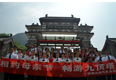 母親節(jié)來臨之際,濟南長途汽車總站精心組織了“相約母親節(jié) 暢游九頂塔”活動,邀請總站2014年度最美勞動者的母親參觀兒女的工作現(xiàn)場,并前往具有濃郁民族風情的九頂塔景區(qū)游覽,在兒女的陪伴下度過了一個快樂而有意義的母親節(jié)。
