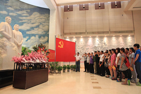 在周鄧紀(jì)念館,全體黨員及預(yù)備黨員,在黨旗和周恩來(lái)總理的塑像前,重溫入黨誓詞,讓新老黨員充分感受黨的神圣,堅(jiān)定黨的信念和為共產(chǎn)主義奮斗終生的決心,以更加飽滿(mǎn)的熱情發(fā)揮共產(chǎn)黨員的先鋒模范作用。