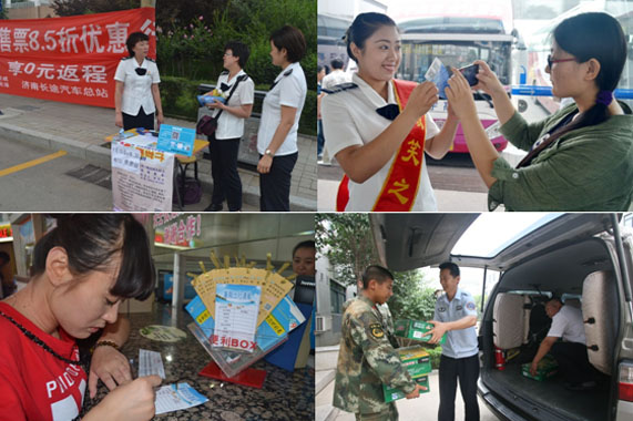 線下售票進(jìn)校園 暑運(yùn)期間,總站“學(xué)子服務(wù)隊(duì)”全面進(jìn)駐濟(jì)南市區(qū)、長(zhǎng)清大學(xué)城及章丘大學(xué)城20余所大中專(zhuān)院校,為學(xué)子們提供現(xiàn)場(chǎng)售票、現(xiàn)場(chǎng)發(fā)車(chē)等服務(wù),截止目前,“學(xué)子服務(wù)隊(duì)”共售票26000余張。