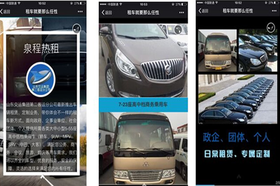 目前公司已通過制作“泉程熱租”(即取泉城、全程之意)主題企業(yè)秀的方式,借助微信等平臺,全力推出該業(yè)務(wù),初期主要以日常車輛租賃為主,逐步向定向租賃、以租代購、以租代買等多元化經(jīng)營服務(wù)推進(jìn)。