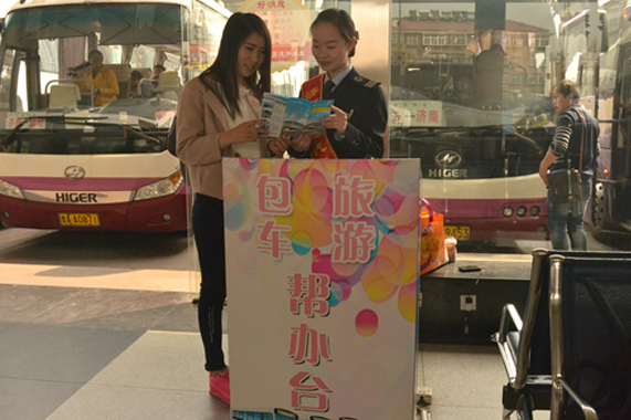包車旅游幫辦臺,出行服務好幫手。為方便廣大團體旅客特別是來濟轉乘的團體旅客辦理包車、旅游等業(yè)務,總站在中轉旅客較為集中的40號檢票口設立了“包車旅游幫辦臺”,為外地來濟的團體旅客提供包車優(yōu)惠、旅游咨詢的專項服務。僅三天時間,就幫助14個團體旅客群體辦理了包車業(yè)務,實現包車收入8000余元。