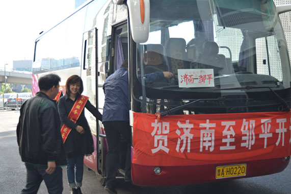 為方便旅客出行,做好公鐵零換乘,自5月16日起,第三客運(yùn)公司正式開(kāi)通濟(jì)南西客站至鄒平線路班車,每天往返16個(gè)班次,車型全部為中型高一級(jí)豪華大客,車上配備了飲水機(jī),
