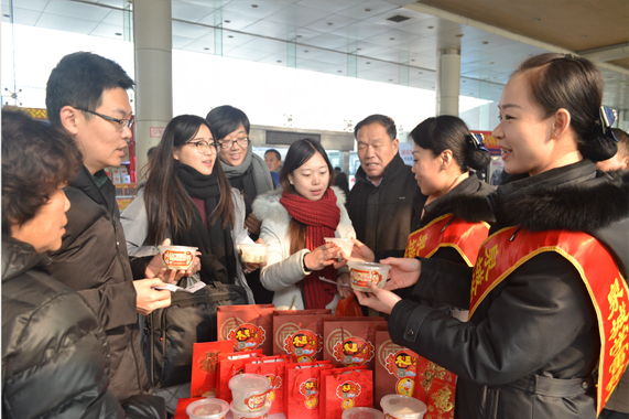 冬至餃子,旅途送暖。冬至當日,檢票部精心策劃了“冬至餃子旅途送暖”活動,準備了熱氣騰騰的水餃、裝滿禮物的福袋送給來站乘車的旅客,在寒冷的冬天為旅客送上一份溫暖?;顒右唤?jīng)推出深受廣大旅客好評,得到《交通進行時》、《有么說么》等電視欄目的報道,樹立了總站優(yōu)質(zhì)的服務(wù)形象。