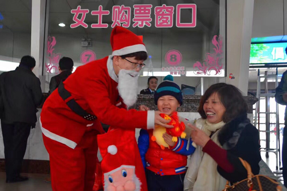 繽紛圣誕,快樂旅途。圣誕節(jié)來臨之際,售票員裝扮成圣誕老人,為前來乘車的小朋友們準備了玩偶、糖果、畫書等豐富多彩的圣誕禮物,為他們送上節(jié)日的歡樂與祝福?;顒邮艿搅诵∨笥押图议L們的喜愛,并得到《生活日報》等媒體的報道。