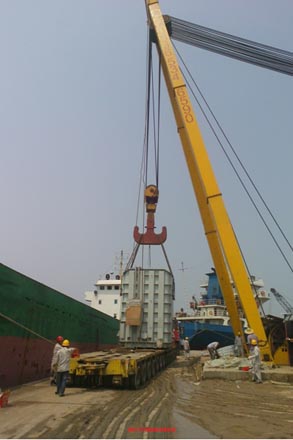 為充分發(fā)揮大件碼頭和山東海河陸運第一座大型吊車的重要作用,實現(xiàn)區(qū)域大件海運、港口裝卸、陸運一條龍服務,羊口港務局利用公路、港口優(yōu)勢與濟南奔騰運輸有限公司簽訂了5—10年的長期合作協(xié)議,主要自羊口港為國家電網定向輸出特高壓直流、交流大型變壓器設備(單件重量245T,體積10M×4M×5M),2014年預計運輸150T-500T重量設備30臺左右,吞吐量將增加近萬噸。目前,已經裝卸大型變壓器7臺,其他設備4臺,累計實現(xiàn)收入近30萬元。